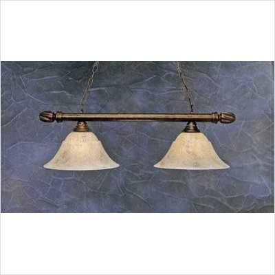 382-BC-53318 Finish: Black Copper Pictured in Bronze Features: -Round bar pendant. -Available in several finishes. -Swirl ends and Italian marble glass shade. -UL / CUL listed. -Accommodates: (2) 150W Medium base bulb. -Dimensions: 11.25'' H x 14'' W x 34.75'' D. Read more...