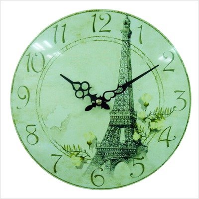 Free Shipping Convexed Metal Eiffel Wall Clock in Distressed Antique Wood @ Amazon.com